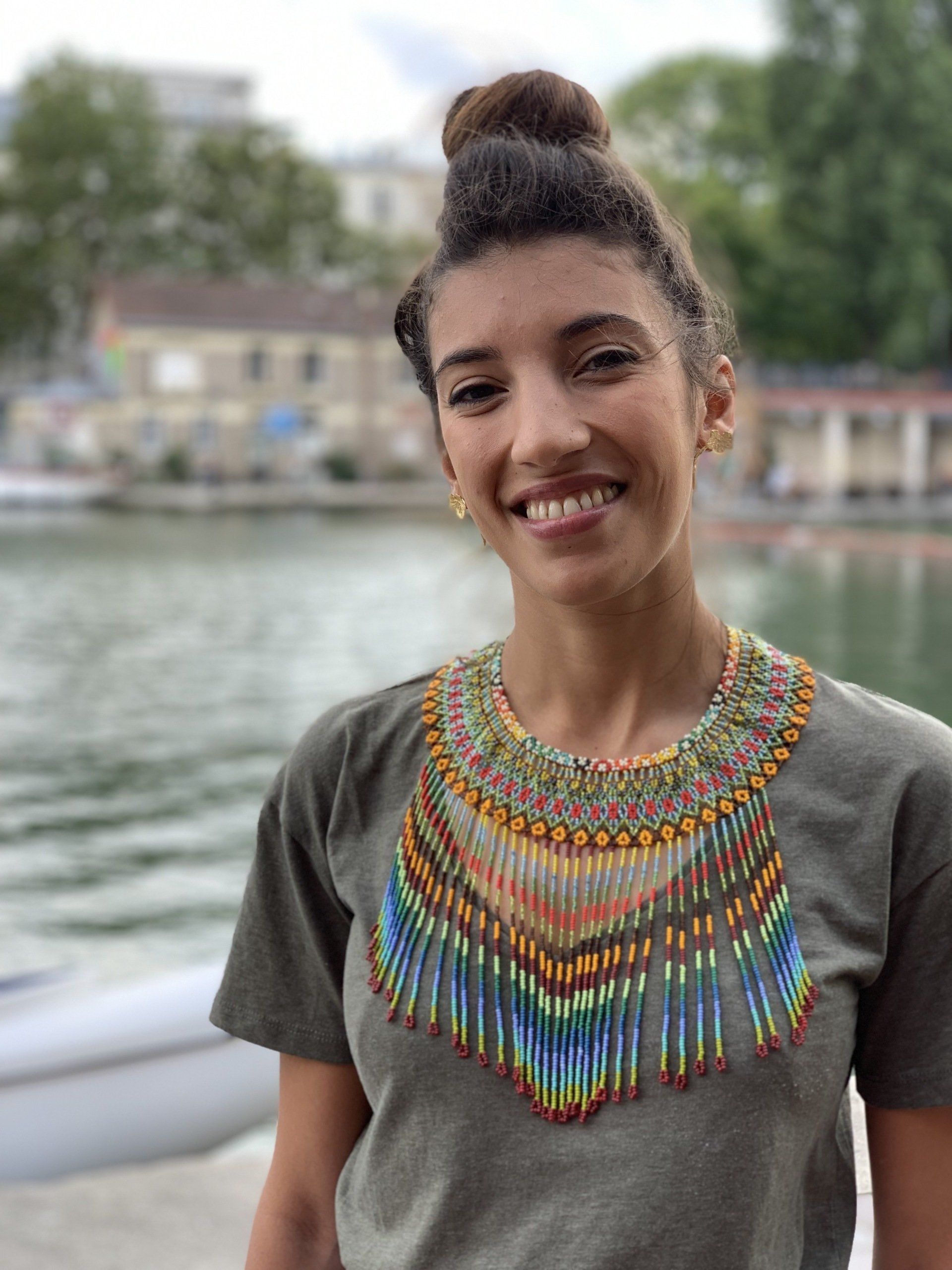 Le moood d’aujourd’hui? Collier Embera haut en couloirs pour avoir toujours le soleil avec moi…🌞