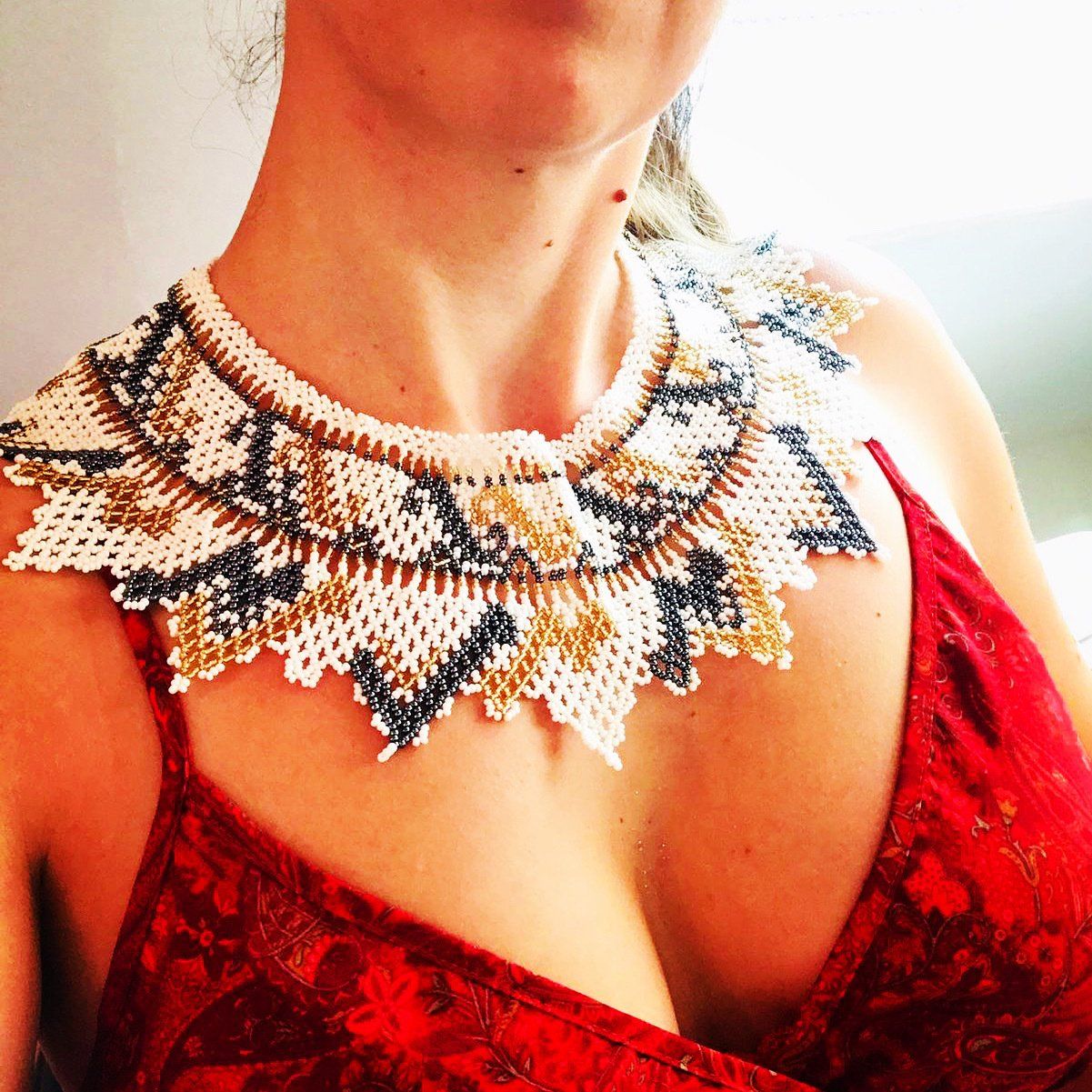 Le moood d’aujourd’hui? Collier Embera haut en couloirs pour avoir toujours le soleil avec moi…🌞